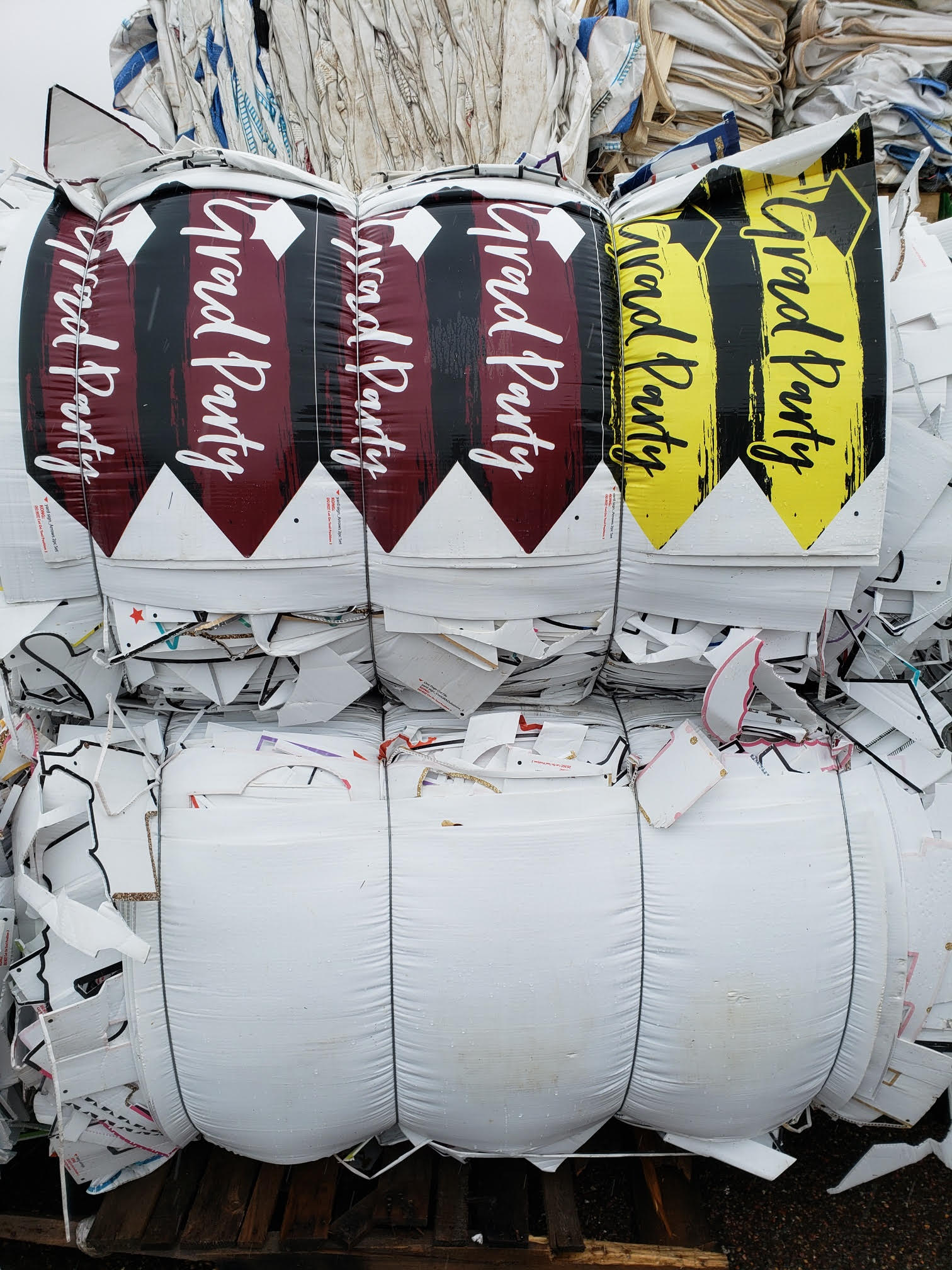 PP Corrugated Sign Scrap and trim scrap can be recycled like any other type of Polypropylene. We pick up truckloads of baled PP Corrugated Sign Scrap for grinding and reprocessing into pellets that are sold back into the industry reinforcing a circular economy and creating green jobs.
